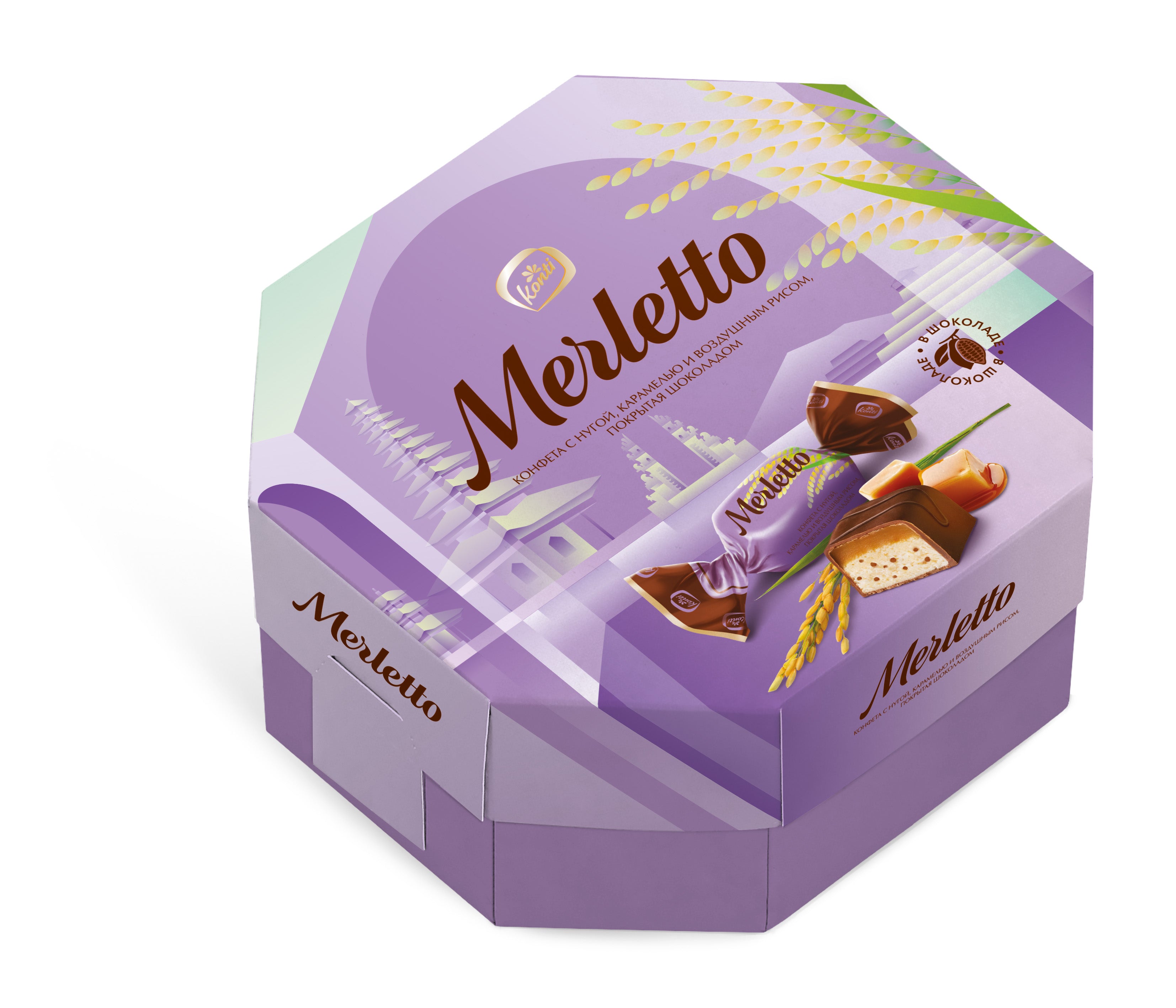 Конфеты Нуга орехи карамель от бренда MERLETTO – ароматный десерт в нежном тающем шоколаде. Он готовится по фирменному рецепту из отборных ингредиентов. В меру сладкие конфеты с нугой, орешками и карамелью никого не оставят равнодушным и подарят отличное настроение. Конфеты отлично подойдут как в качестве самостоятельной сладости, которую можно употребить на перекусе, так и в качестве дополнения к чаепитию. Их рекомендуется есть с чаем, кофе, какао. Такие конфеты содержат в себе глюкозу, которая, в свою очередь, является хорошим источником энергии, насыщая мозг, мышцы и внутренние органы. Также сладость поднимает настроение, поскольку способствует выработке эндорфина – гормона счастья. Конфеты понравятся как взрослым, так и детям. Помимо этого, конфетки часто используются в качестве подарка или знака внимания. Они являются универсальным способом выразить свою заботу и внимание к близким людям. Также такие кондитерские изделия могут стать основой для создания уникальных десертов и украшений для тортов и пирожных.